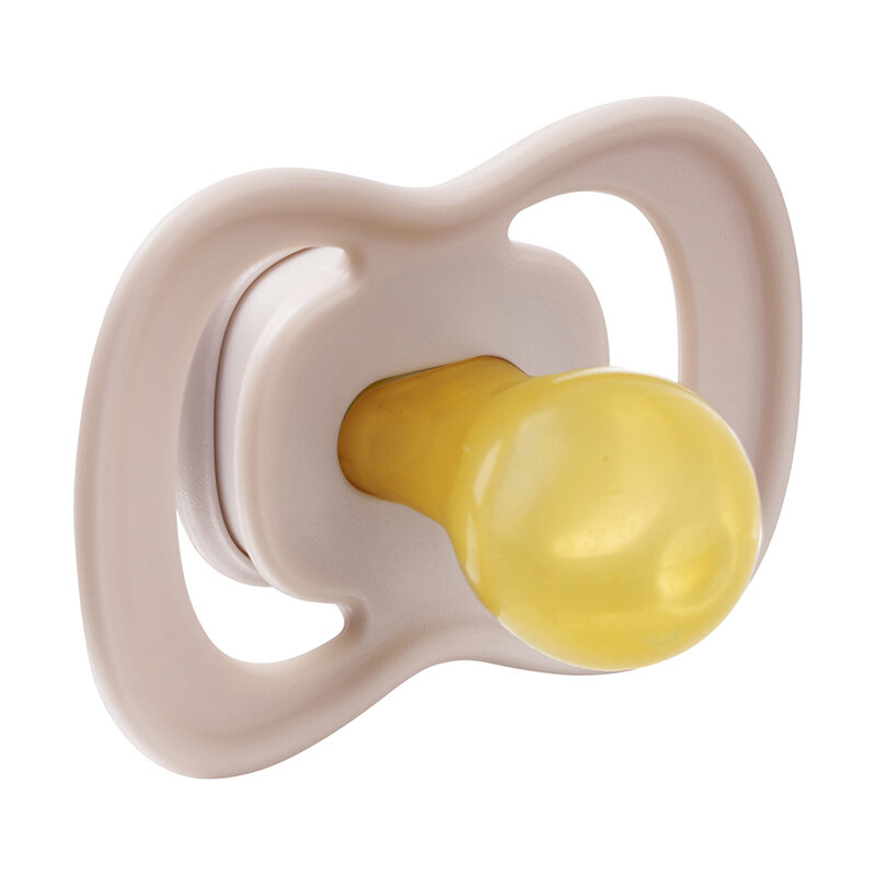 Der äußere symmetrische farbige Teil des Schnullers mit Belüftungslöchern (Schild) enthält einen antimikrobiellen Zusatz auf Silberbasis, der bis zu 99,9 % der Bakterien eliminiert. Die Zielscheibe mit Belüftungslöchern bedeckt einen kleineren Teil der Haut um die Brustwarze des Babys und verringert so das Risiko, dass sich unter der Zielscheibe des Schnullers unerwünschte Ekzeme entwickeln. Die symmetrische Formgebung des farbigen Schildes sorgt für einen optimalen Luftdurchgang unter der Nase des Kindes.