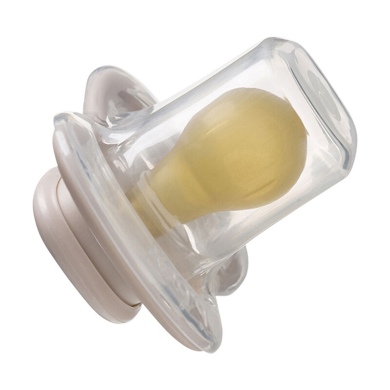 Der Schnuller besteht aus natürlichem Material und durch regelmäßige Sterilisation und Verwendung können sich Form und Farbe verändern. Eine leichte Farbveränderung ist in Ordnung, wenn der Schnuller seine Farbe ändert (dunkler wird) oder klebrig wird, muss er ersetzt werden!