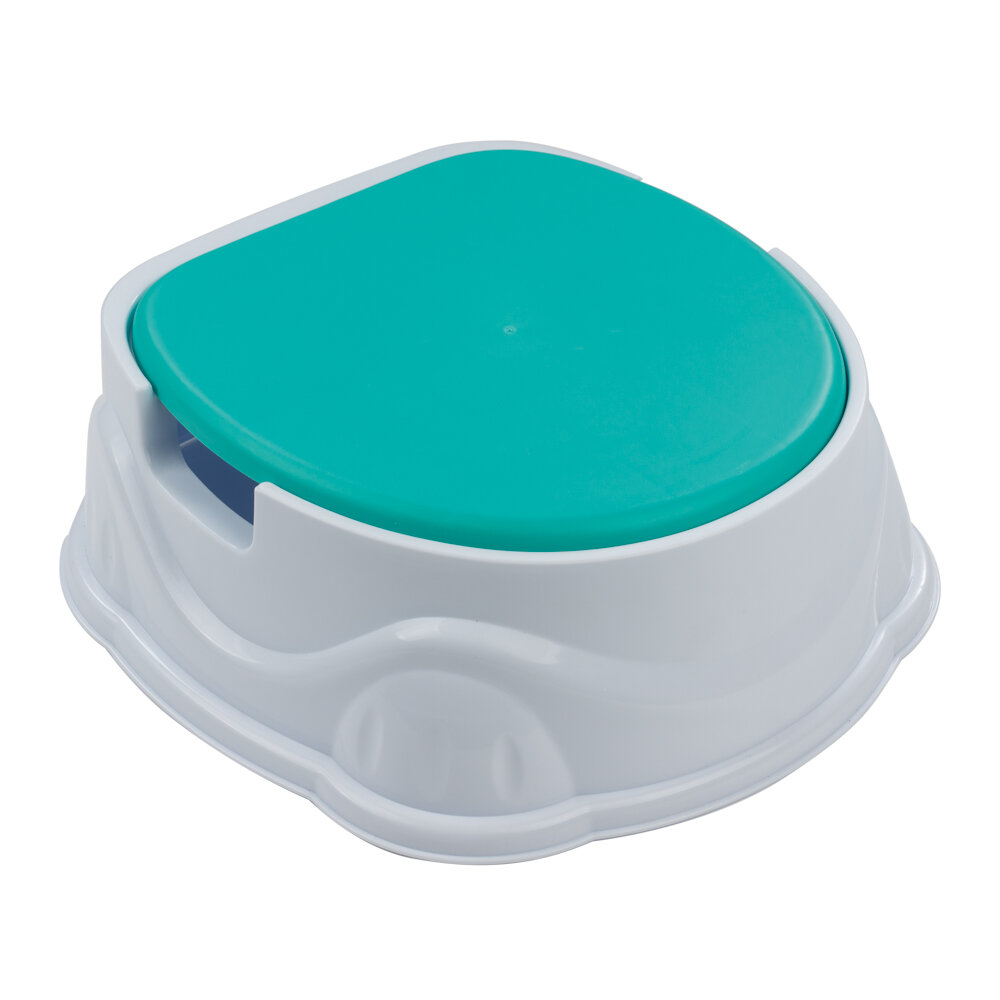 Geeignet für Anfänger als Töpfchen, dann als Toilettensitzadapter und anschließend als Tritthocker. In ansprechender pastellgrüner Farbe.